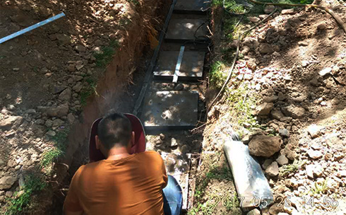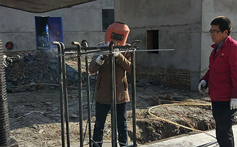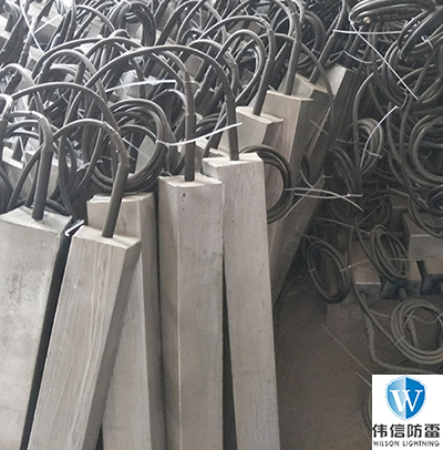 避雷針若定位在地面,則將焊接成形的基礎(chǔ)預(yù)埋件垂直置于1200×1200×1000mm規(guī)格土坑的正中央,至少有兩點于180度方向與引下線作可靠電氣連接,各焊接點符合規(guī)范要求;若避雷針定位在大樓頂…